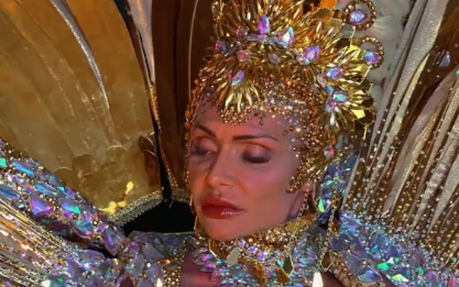 Segundo a escola de samba, a musa “desfilou com garra e brilho à frente do segundo carro alegórico da nossa escola, representando a comunidade com toda sua paixão pelo Carnaval”.